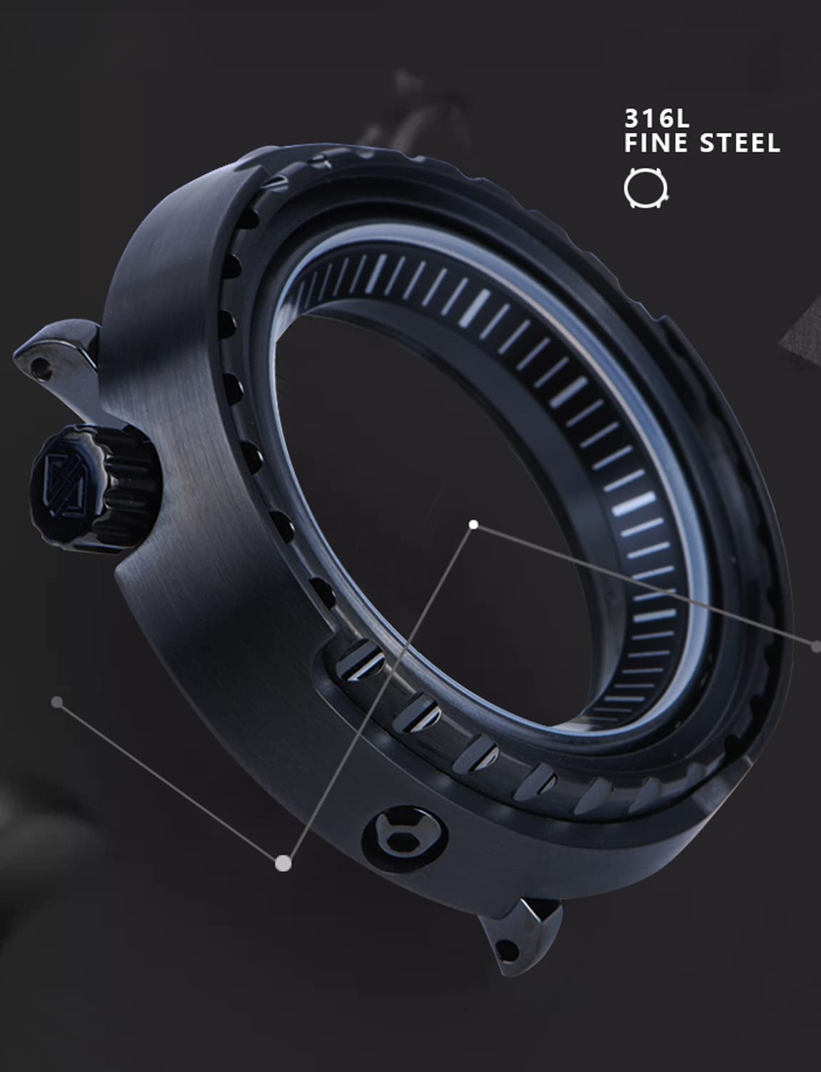 Case material: 316L stainless steel, PVD black